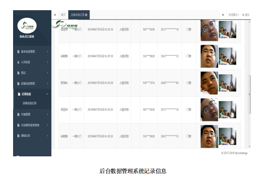四、物業(yè)可查看訪客人員人臉記錄信息,提高小區(qū)綜合治安管理水平;